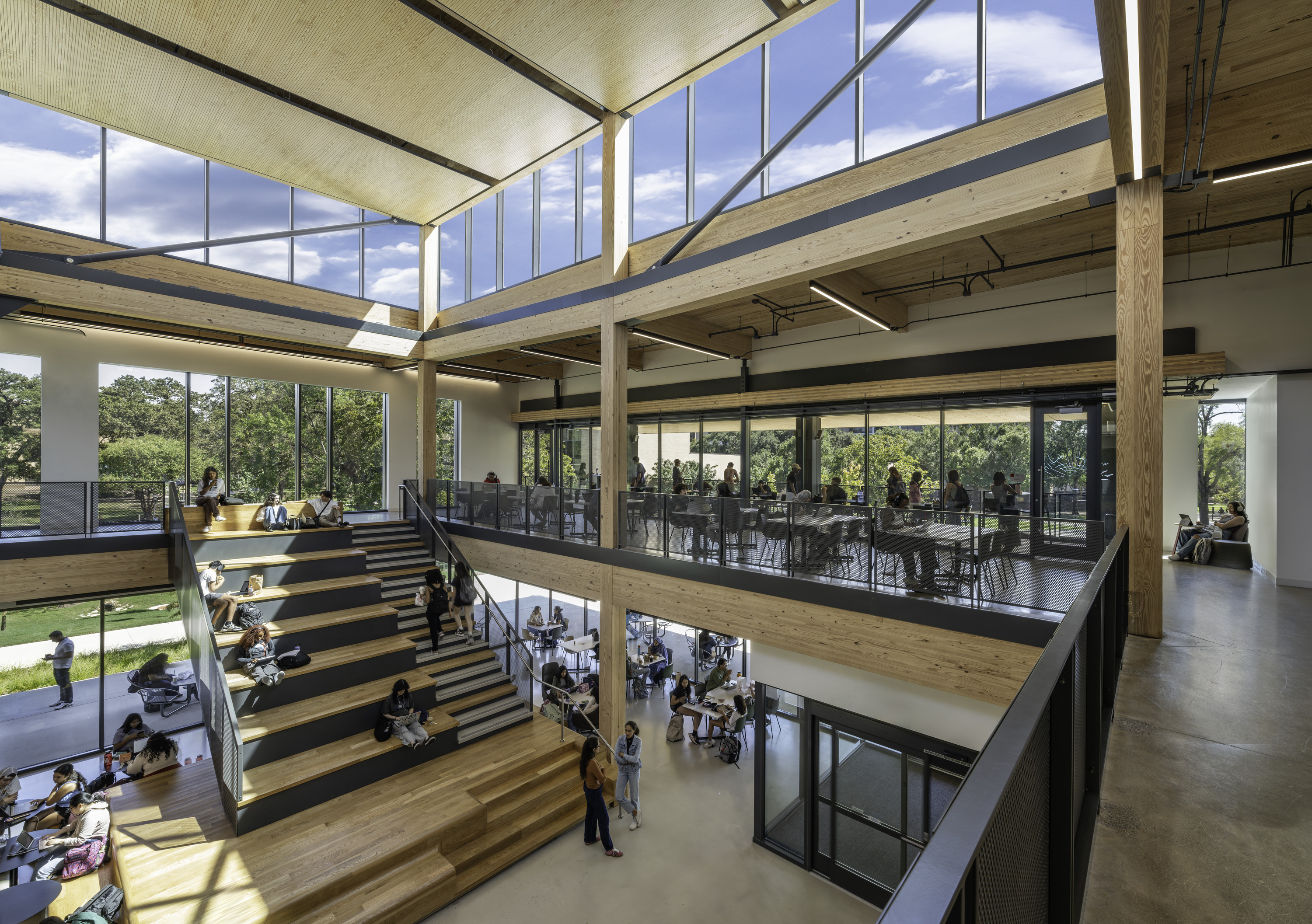 Located in the heart of the University of Houston’s campus, the Retail, Auxiliary, and Dining (RAD) Center was built atop the historic 1970s era underground Student Center Satellite Building. The dynamic space features six dining options, 400 indoor and outdoor seats, and various student amenities. Walter P Moore worked alongside the project architect, Perkins+Will, to develop a structural grid that aligned with the original grid and optimized it for a more sustainable mass timber option. Due to the lighter weight of the mass timber, we were able to creatively and economically reuse most of the existing foundations and columns from the old building. As the first mass timber building in the University of Houston system, our collaborative team was an integral part of advising the University facilities staff on the long-term durability of mass timber and reduced embodied carbon on the project. This achievement highlights our commitment to sustainable design and innovative engineering, making a lasting impact on the university and community.